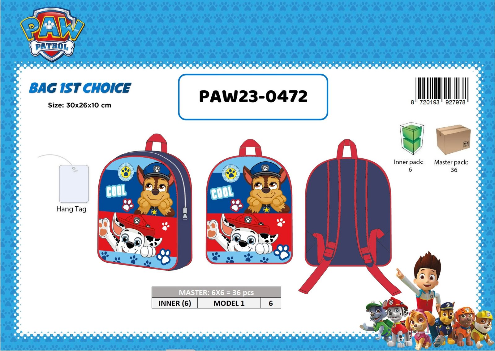 BAG 1ST CHOICE 30CM PAW PATROL BOY 30X26X10 CM
