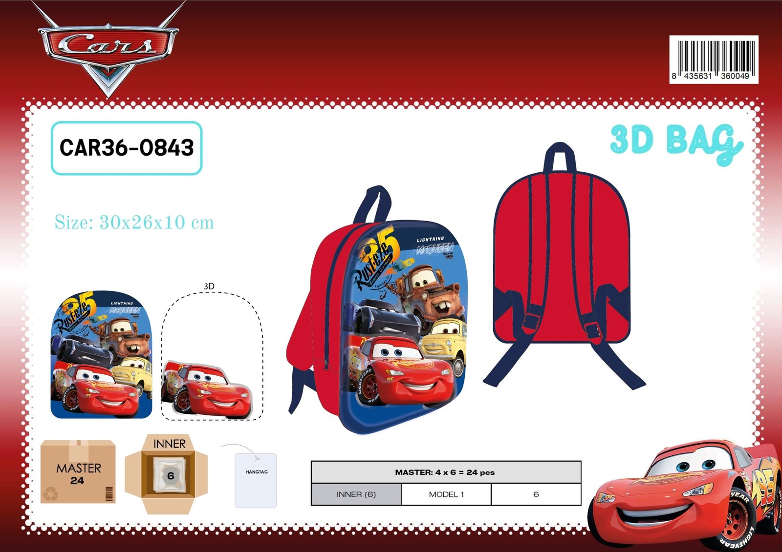 BAG 3D BASIC CARS DISNEY 30X26X10 CM