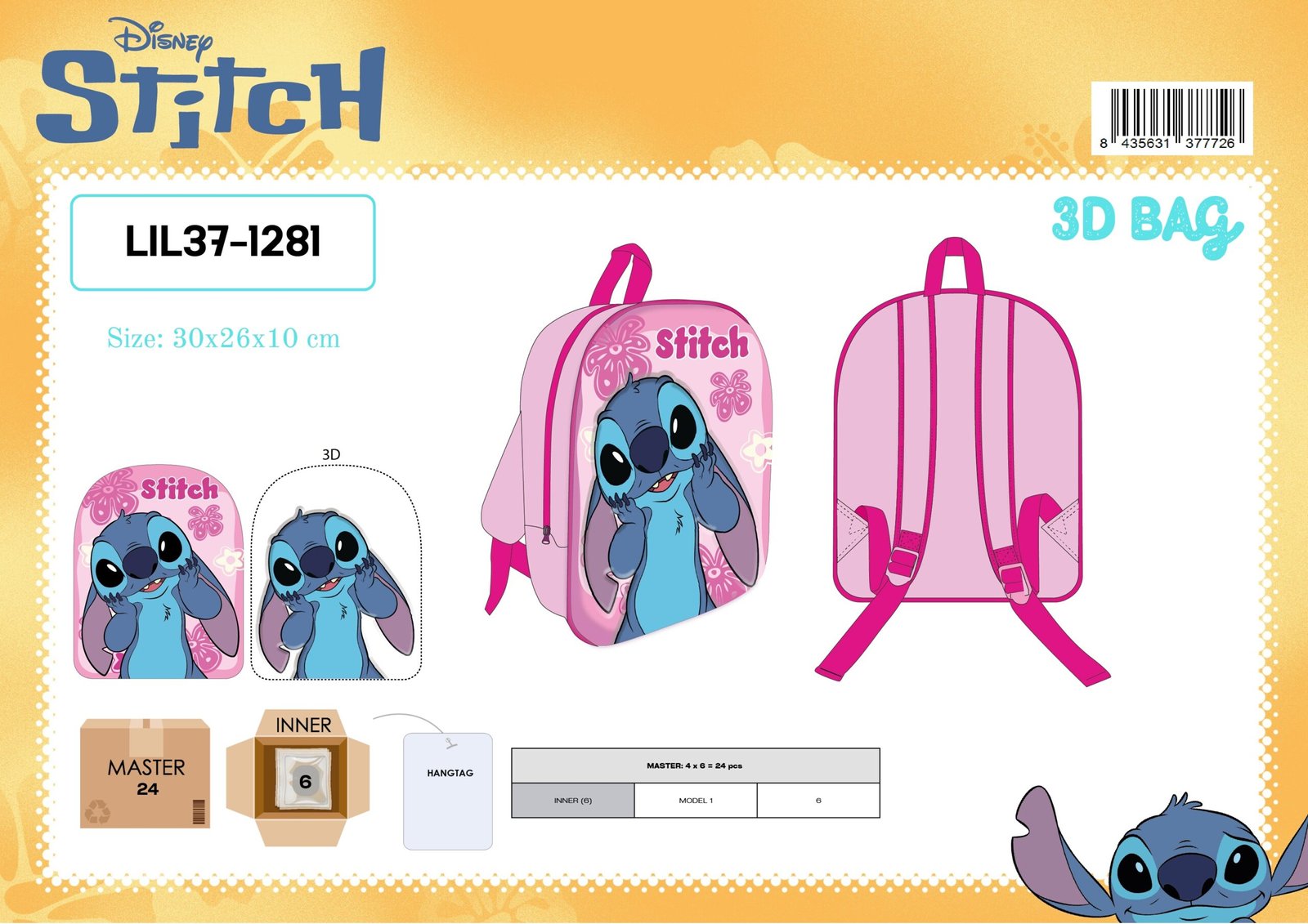 BAG 3D BASIC LILO AND STITCH DISNEY PINK 30X26X10 CM