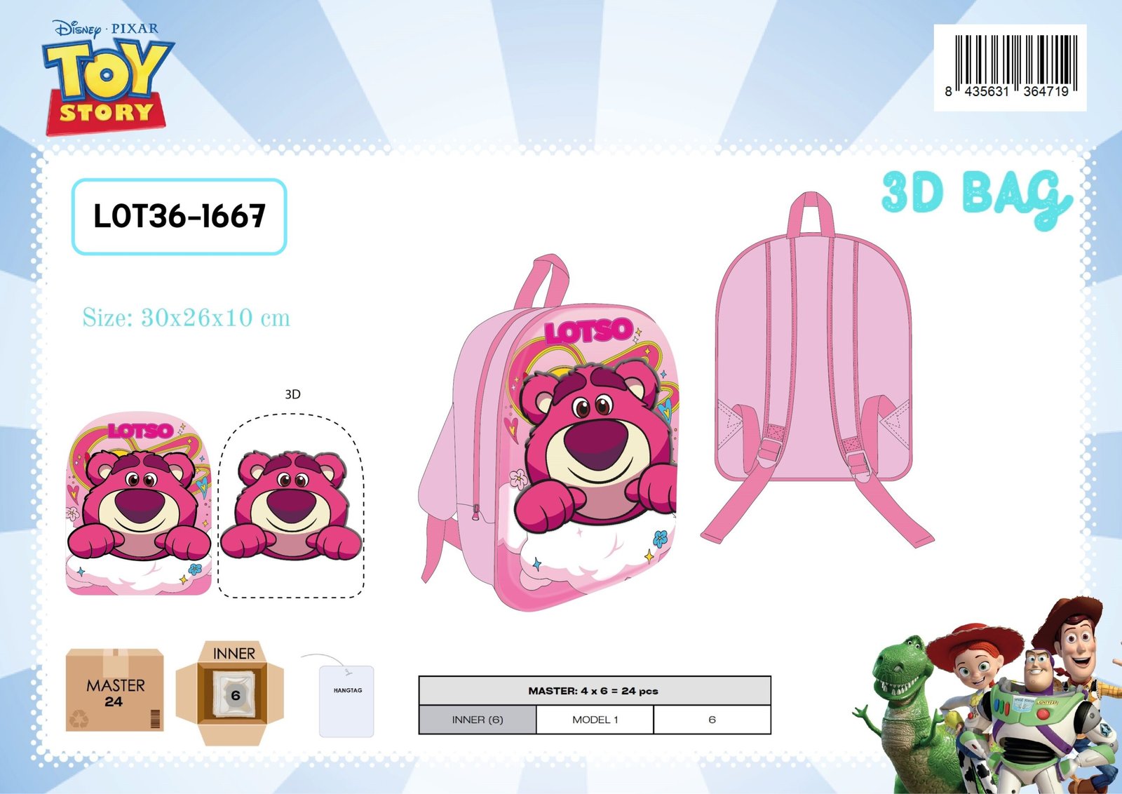 BAG 3D BASIC LOTSO DISNEY 30X26X10 CM