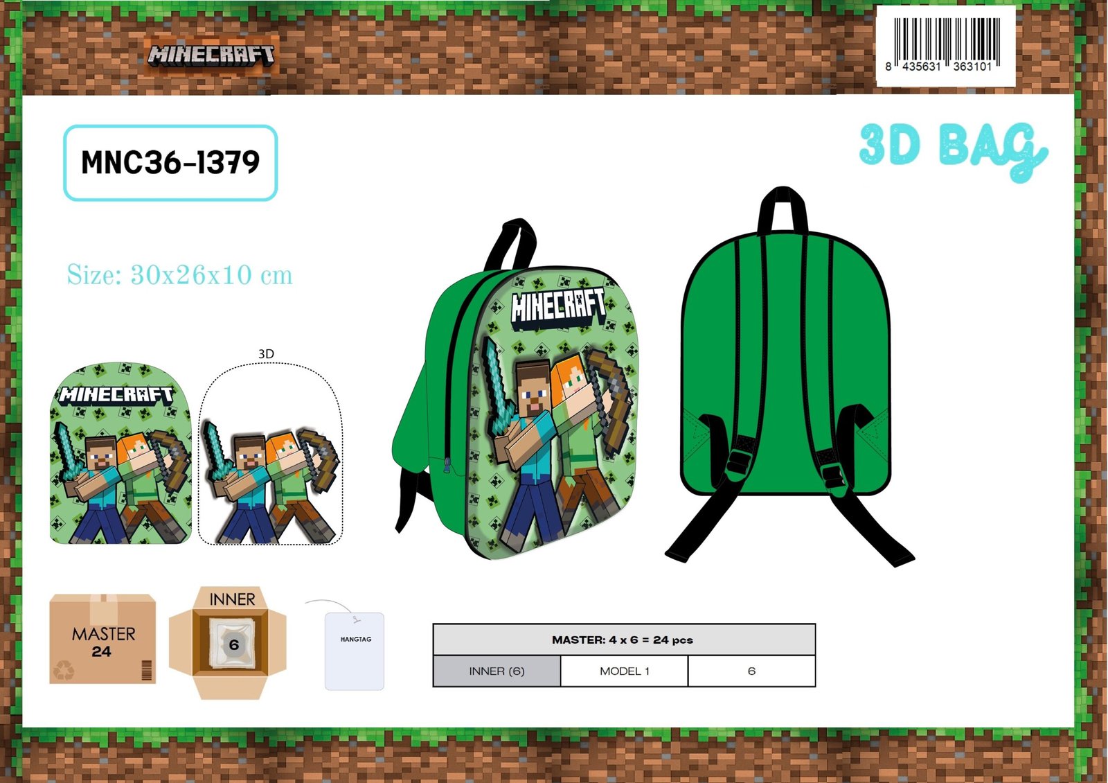 BAG 3D BASIC MINECRAFT 30X26X10 CM