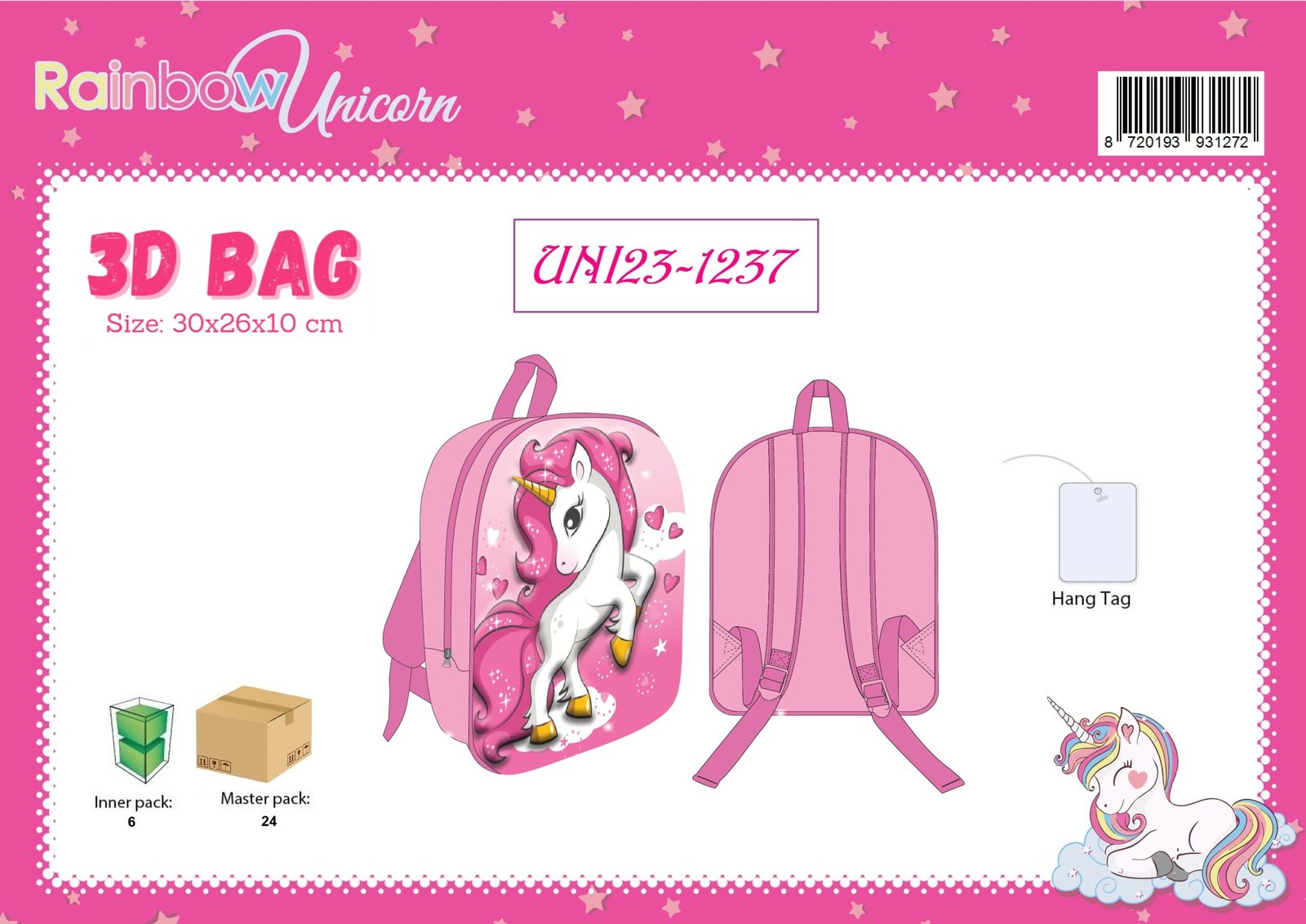 BAG 3D BASIC UNICORN 30X26X10 CM