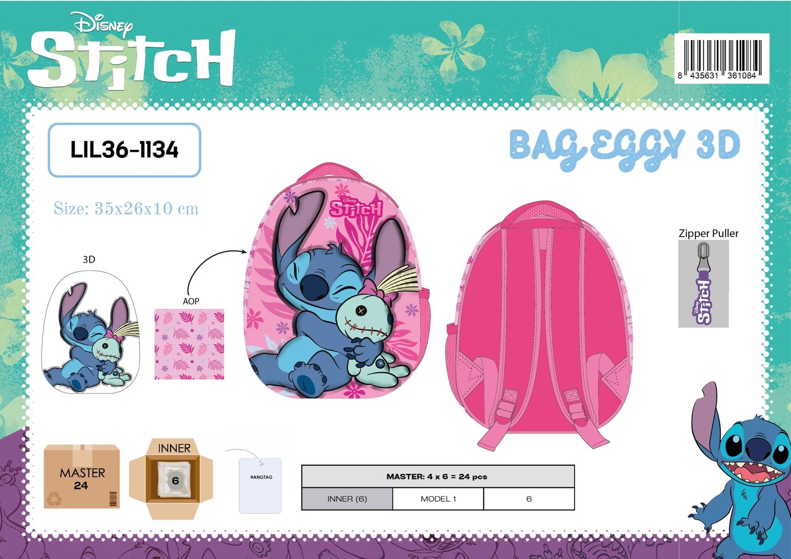 BAG EGGY 3D LILO AND STITCH DISNEY GIRL 35X26X10CM