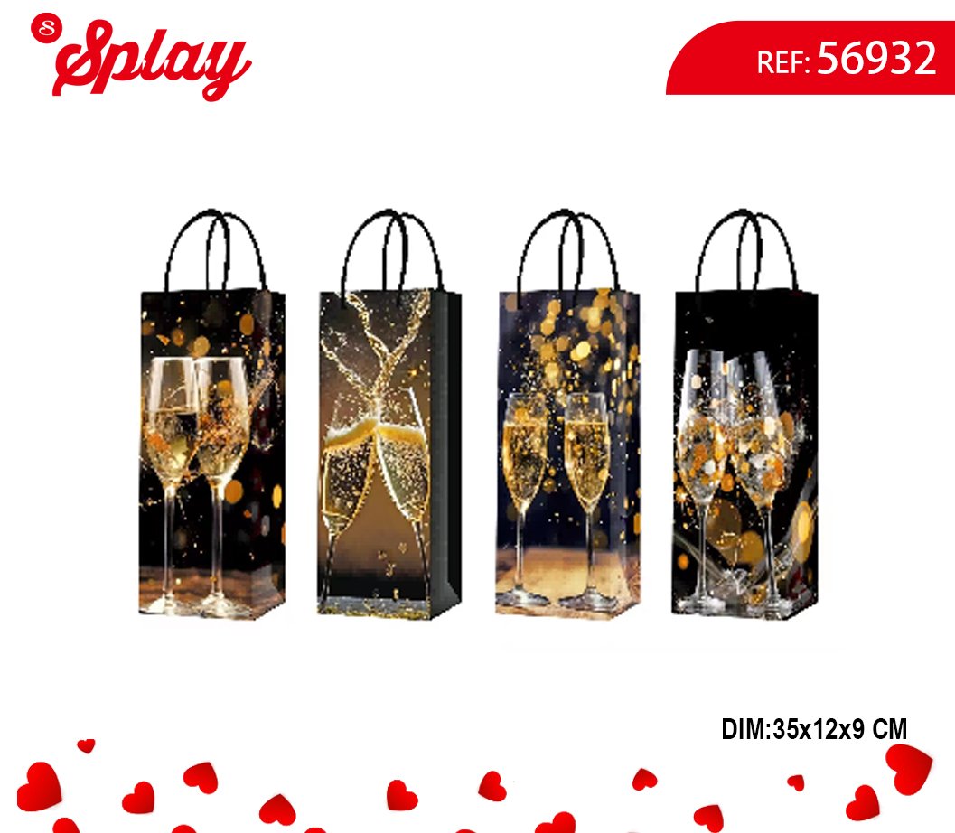 Bolsa de regalo para vino, resistente y elegante, diseñada para botellas estándar. Disponible en varios colores y diseños decorativos, ideal para regalos, celebraciones y campañas especiales. Perfecta para tiendas, eventos y venta al por mayor.