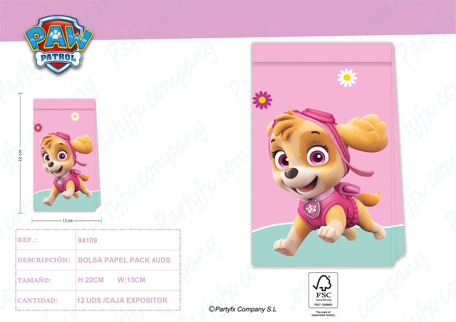 BOLSA REGALO DE PAPEL DE PAW PATROL SKYE&EVERST PACK 4UDS