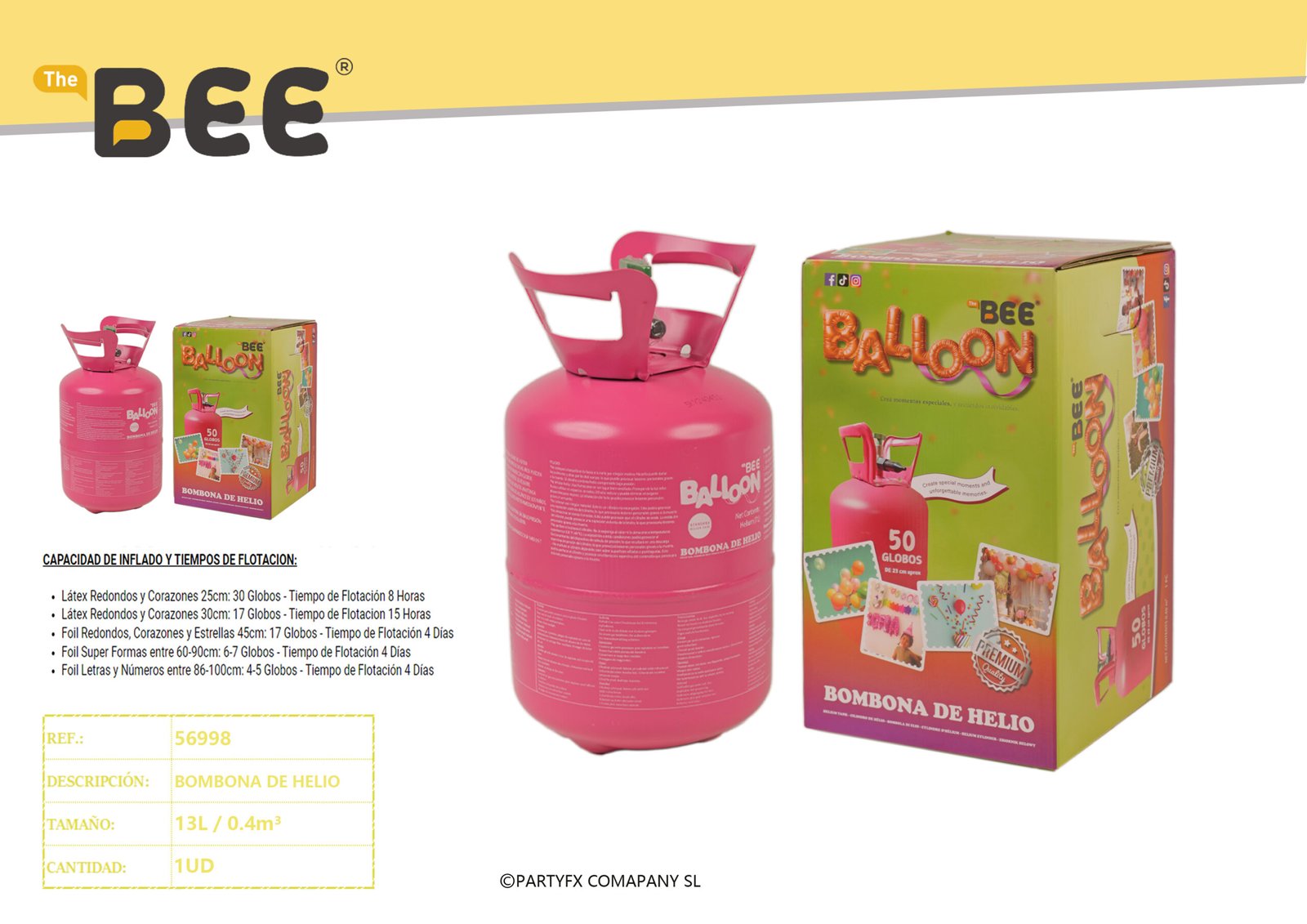Helio de alta calidad para inflado de globos, ideal para fiestas, eventos y uso profesional.