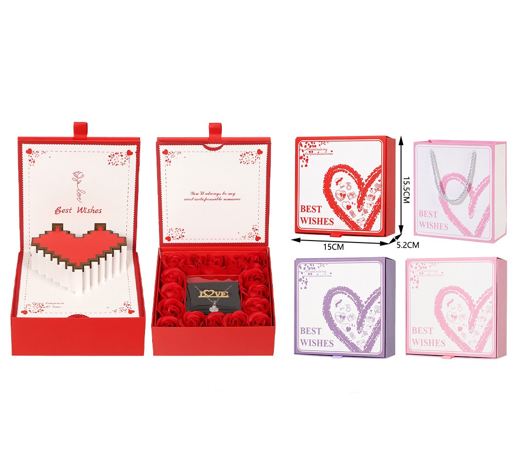 Elegantes cajas de joyero con rosa, diseñadas para realzar cualquier regalo romántico. Cada modelo combina flores eternas, compartimentos para joyas y una presentación premium con bolsa a juego. Ideales para San Valentín, aniversarios y detalles especiales que requieren una presentación cuidada y de alta calidad.
