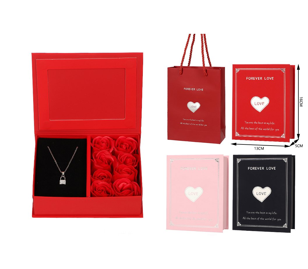 Elegantes cajas de joyero con rosa, diseñadas para realzar cualquier regalo romántico. Cada modelo combina flores eternas, compartimentos para joyas y una presentación premium con bolsa a juego. Ideales para San Valentín, aniversarios y detalles especiales que requieren una presentación cuidada y de alta calidad.