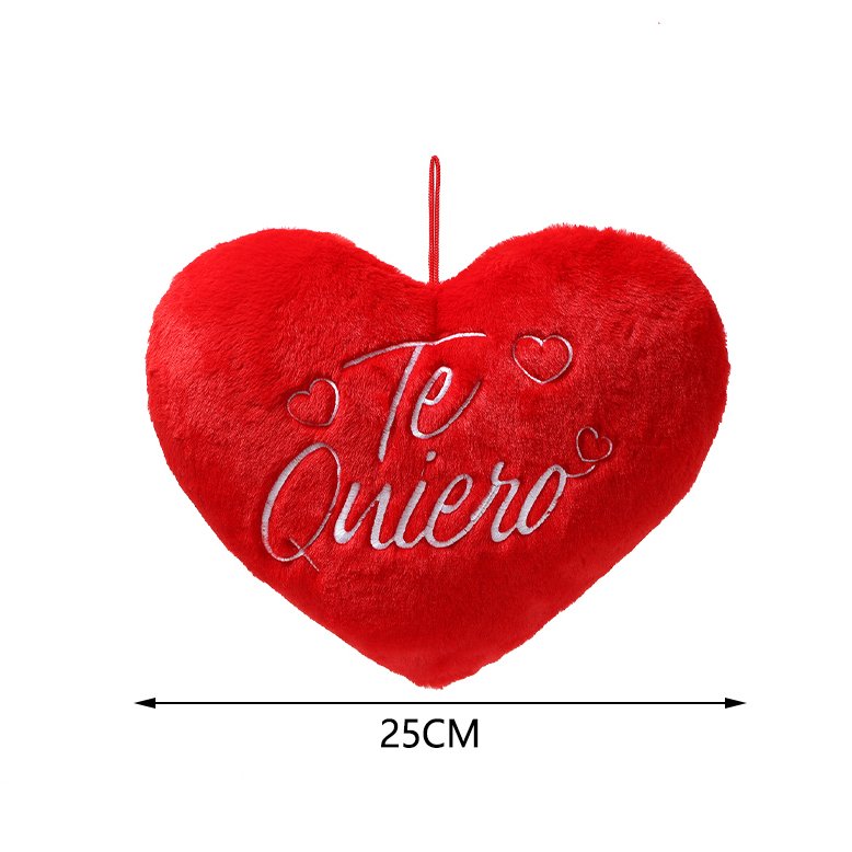 Cojines de peluche con forma de corazón, suaves y agradables al tacto. Disponibles en varios diseños bordados como Te Amo, Te Quiero o I Love You. Ideales para detalles románticos, decoración y temporadas especiales como San Valentín.