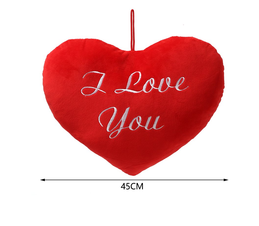 Cojines de peluche con forma de corazón, suaves y agradables al tacto. Disponibles en varios diseños bordados como Te Amo, Te Quiero o I Love You. Ideales para detalles románticos, decoración y temporadas especiales como San Valentín.