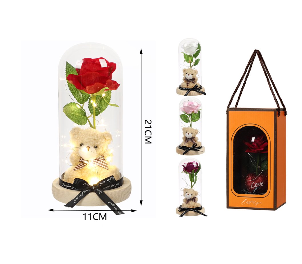 Flor premium en cúpula de cristal con luz
