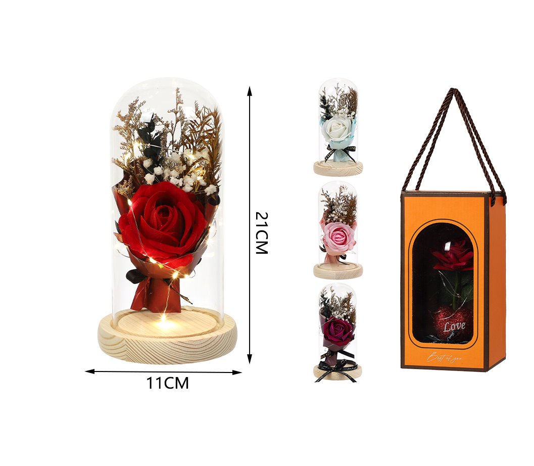 Flor premium en cúpula de cristal con luz