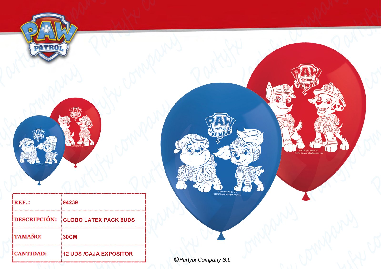 GLOBOS DE LATEX 30CM DE PAW PATORL THE MOVIE PACK 8UDS