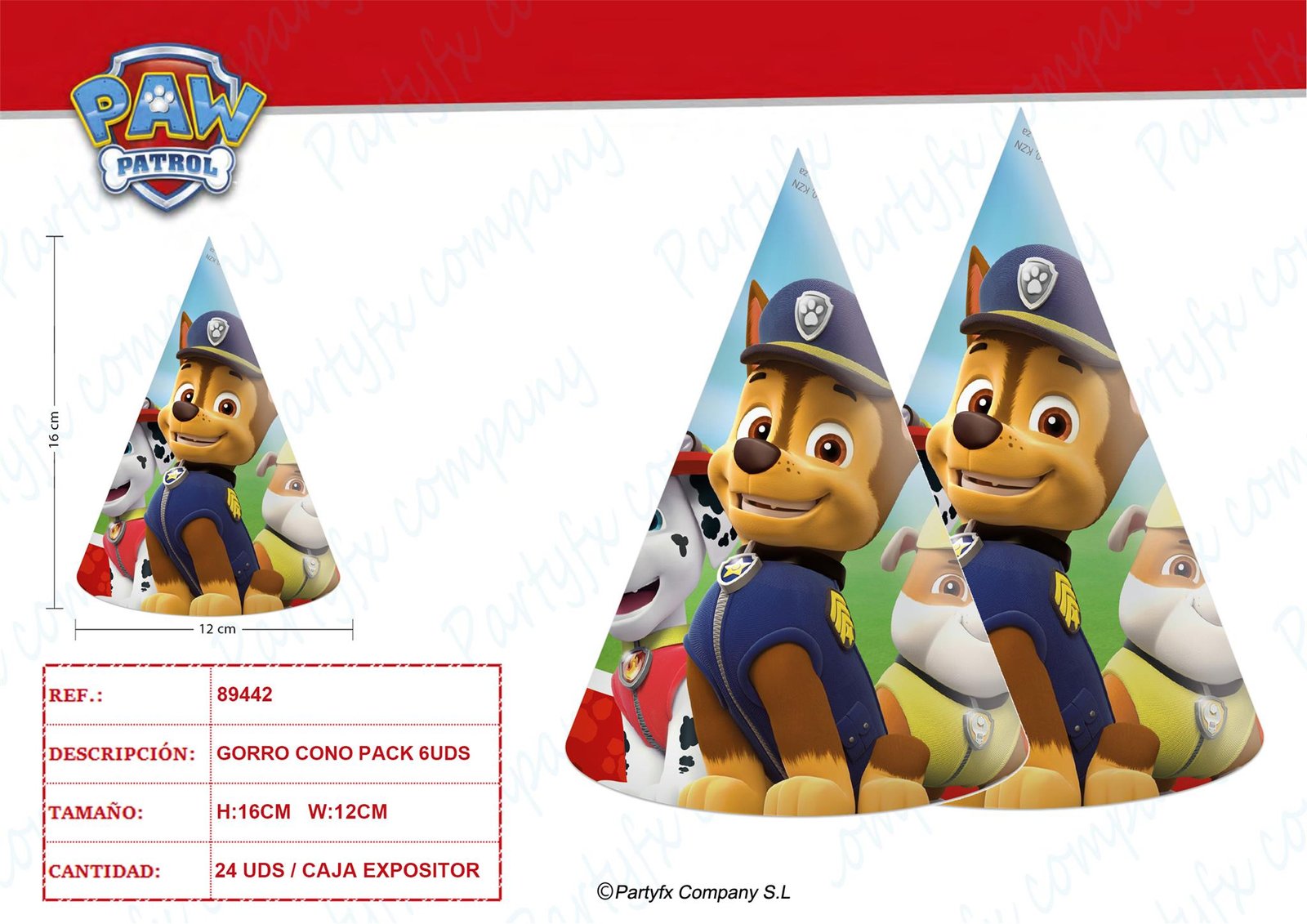 GORROS DE PAW PATROL READY FOR ACTION PK- 6UDS