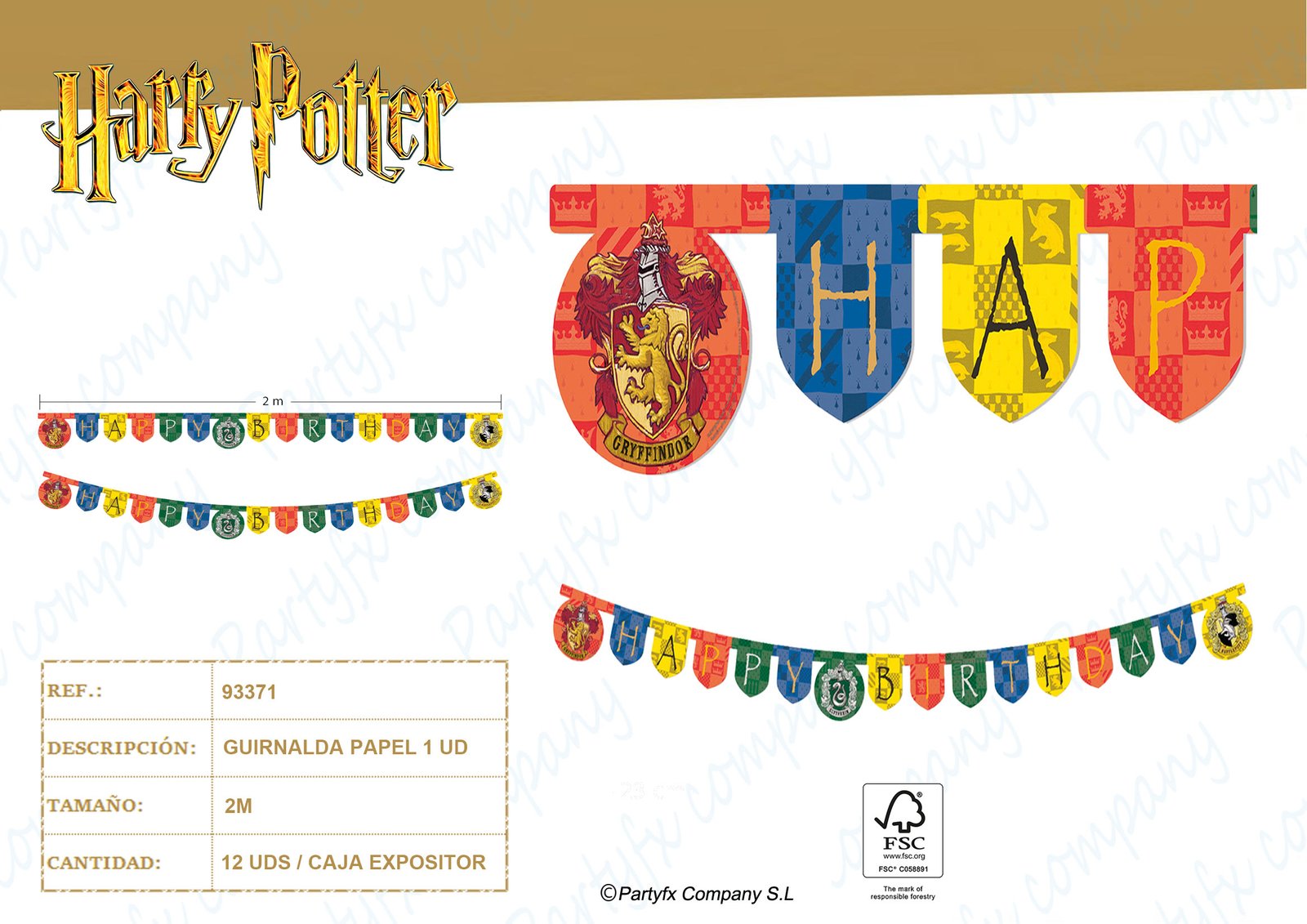 GUIRNALDA PAPEL HARRY POTTER HOGWARTS HOUSES FSC