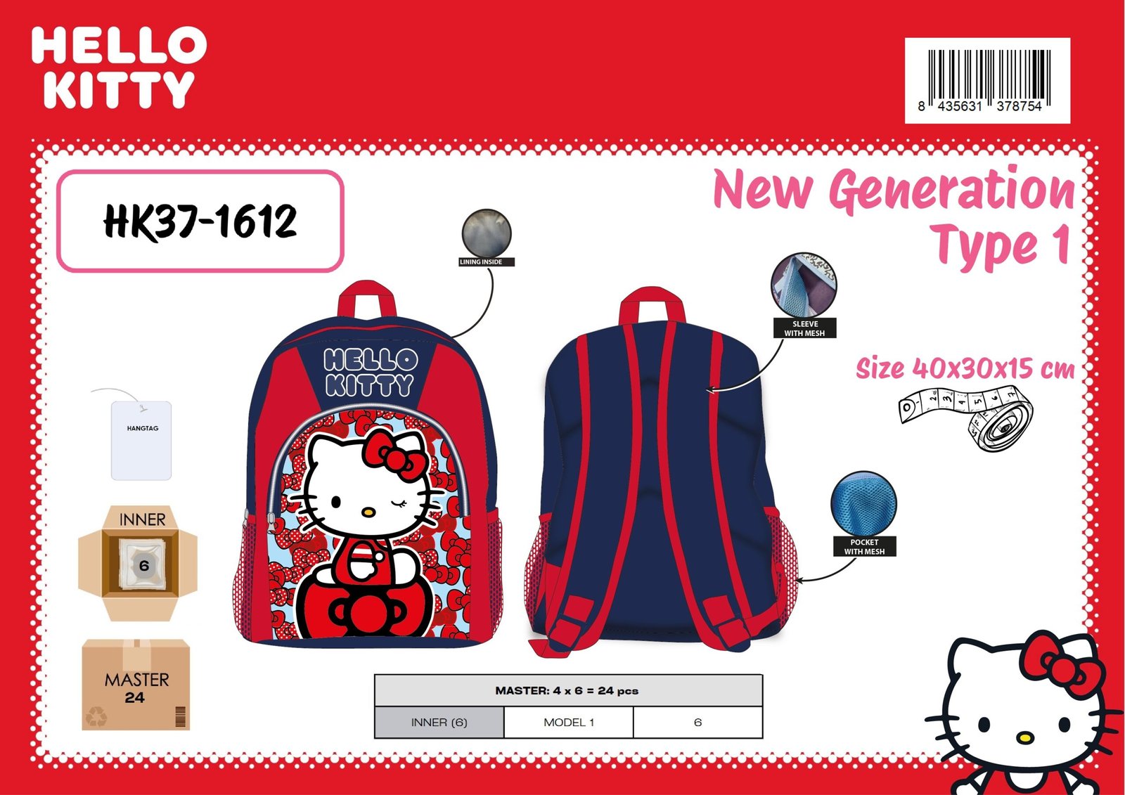 NEW GENERATION TYPE 1 HELLO KITTY 40X30X15 CM