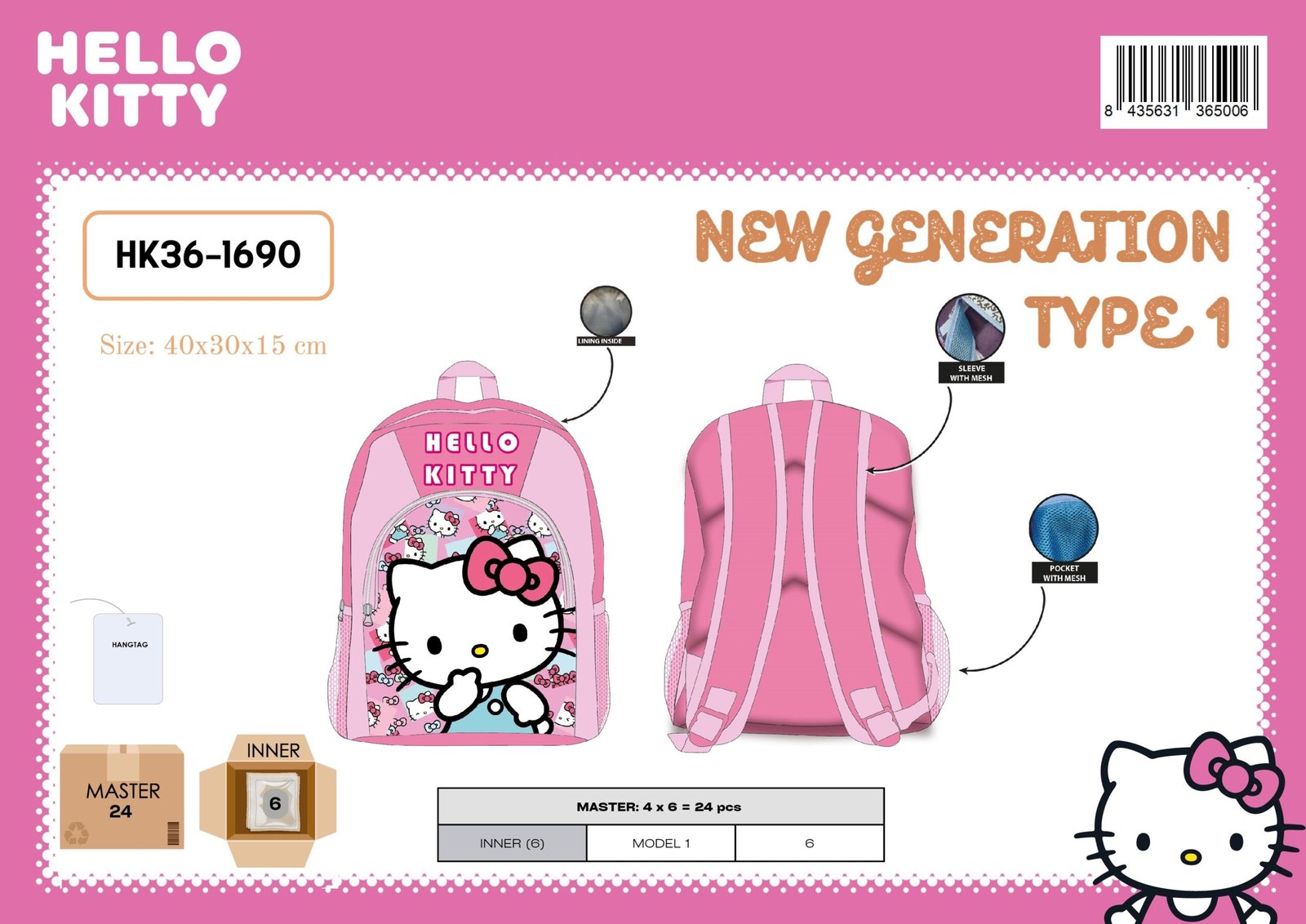 NEW GENERATION TYPE 1 HELLO KITTY 40X30X15 CM