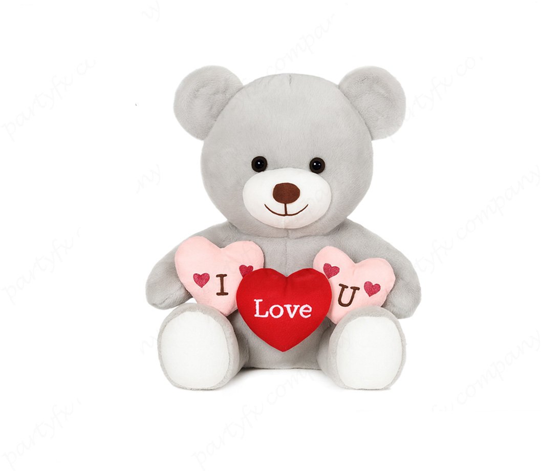 Oso de peluche abrazando corazon, color gris, 30 cm