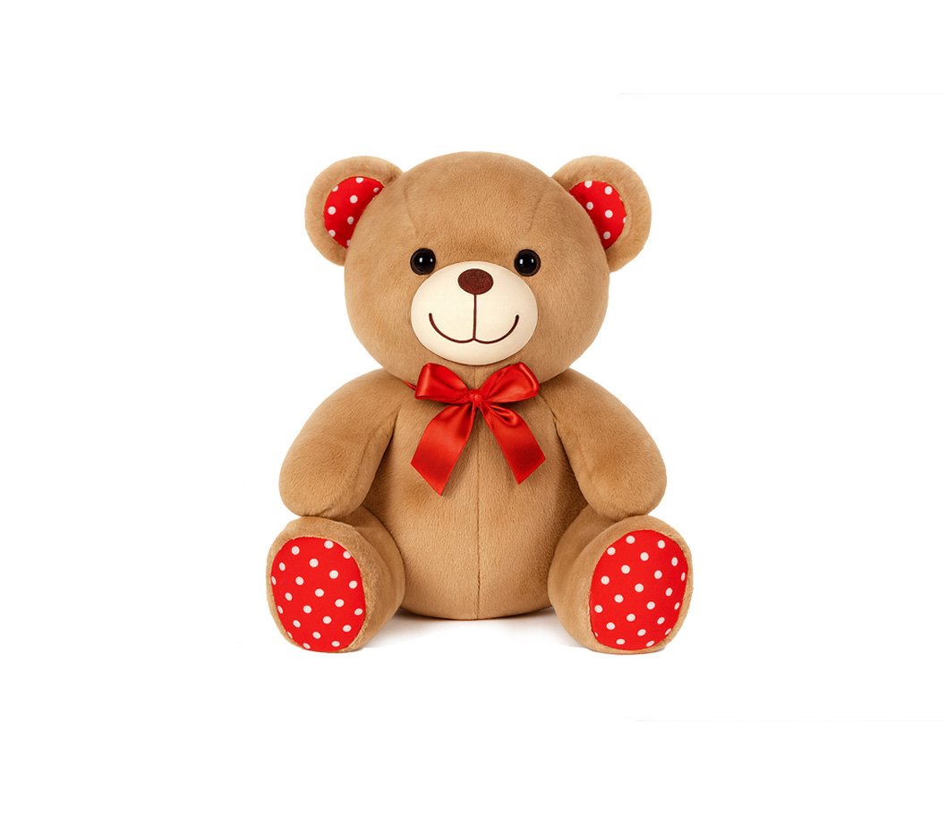 Osito de peluche suave, disponible en varios tamaños y colores, con corazón o globo decorativo. Un diseño clásico y tierno, ideal para regalos románticos y campañas de San Valentín.