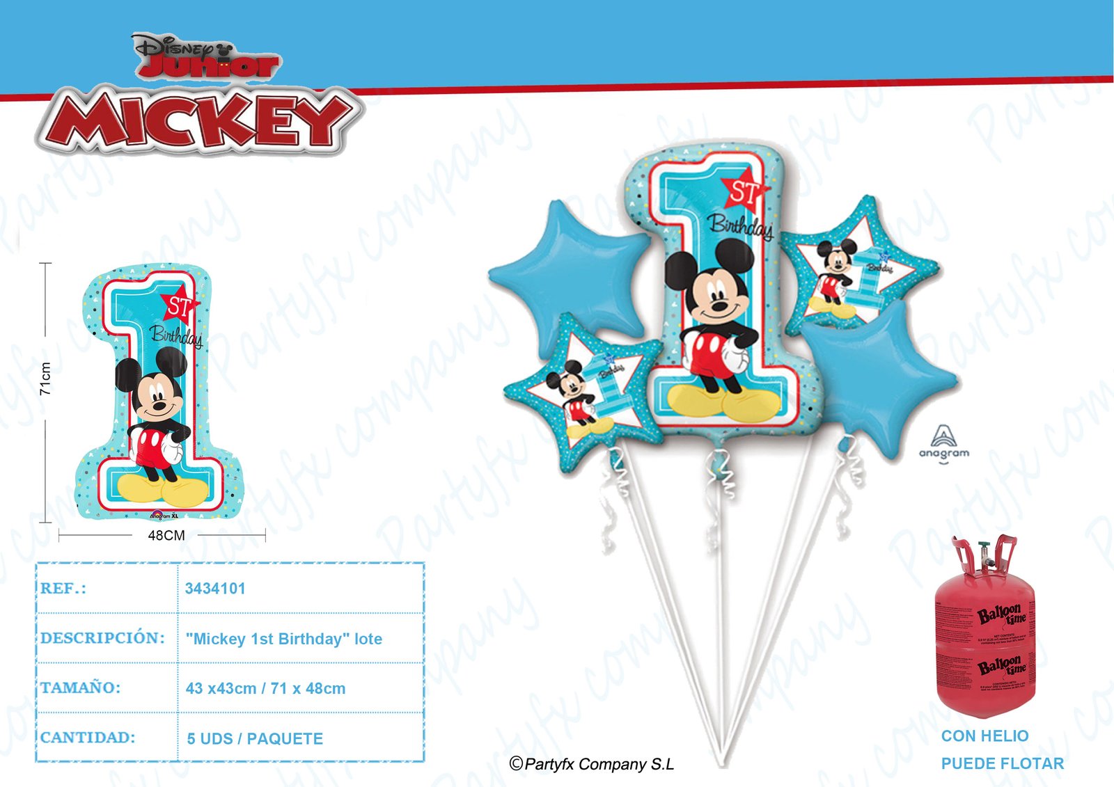 Paquete «Mickey 1st Birthday» 5 Globo foil