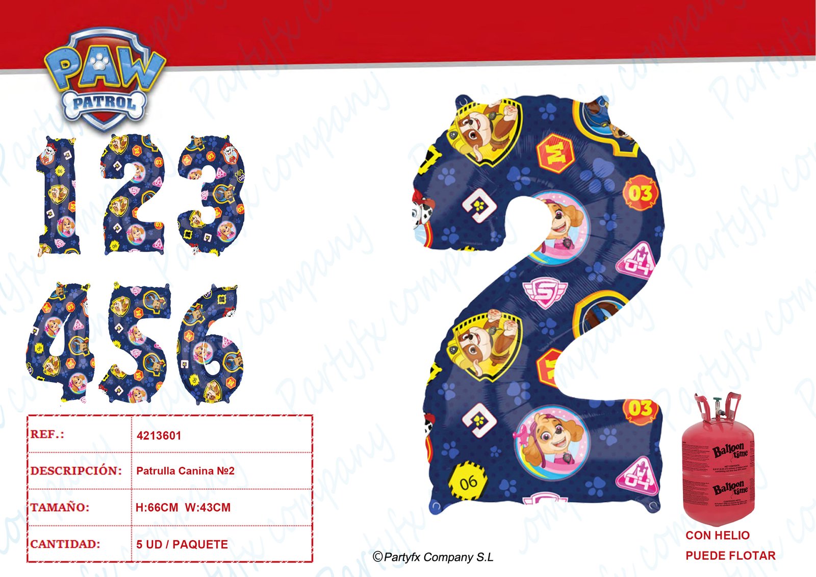 Paw Patrol Number 2 Globo foil 43cm x 66cm