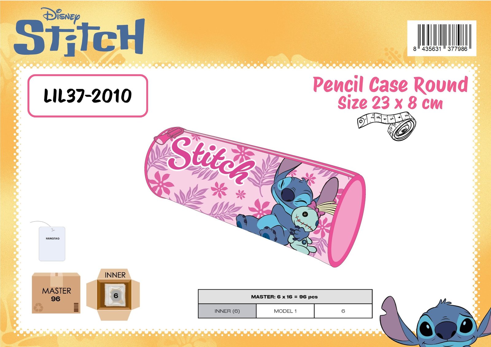 PENCIL CASE ROUND LILO AND STITCH DISNEY PINK 23X8 CM