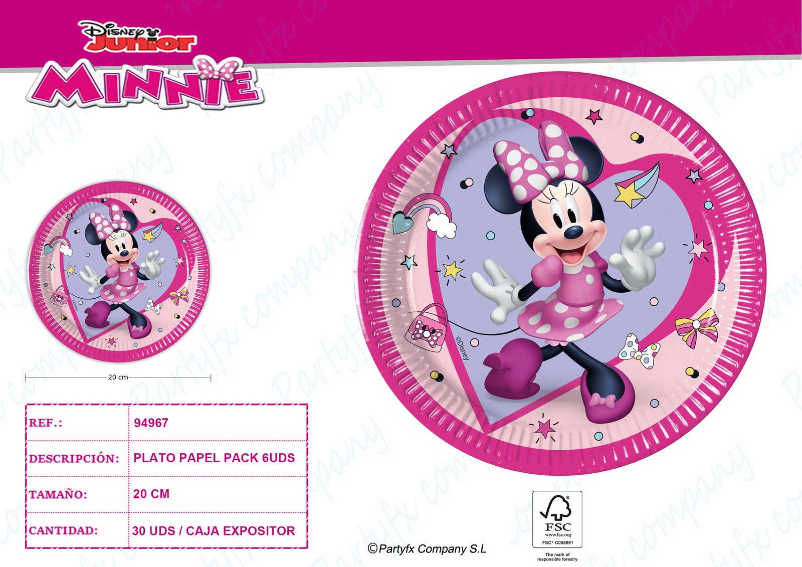 PLATO PAPEL 20CM FSC DE MINNIE JUNIOR 6UDS