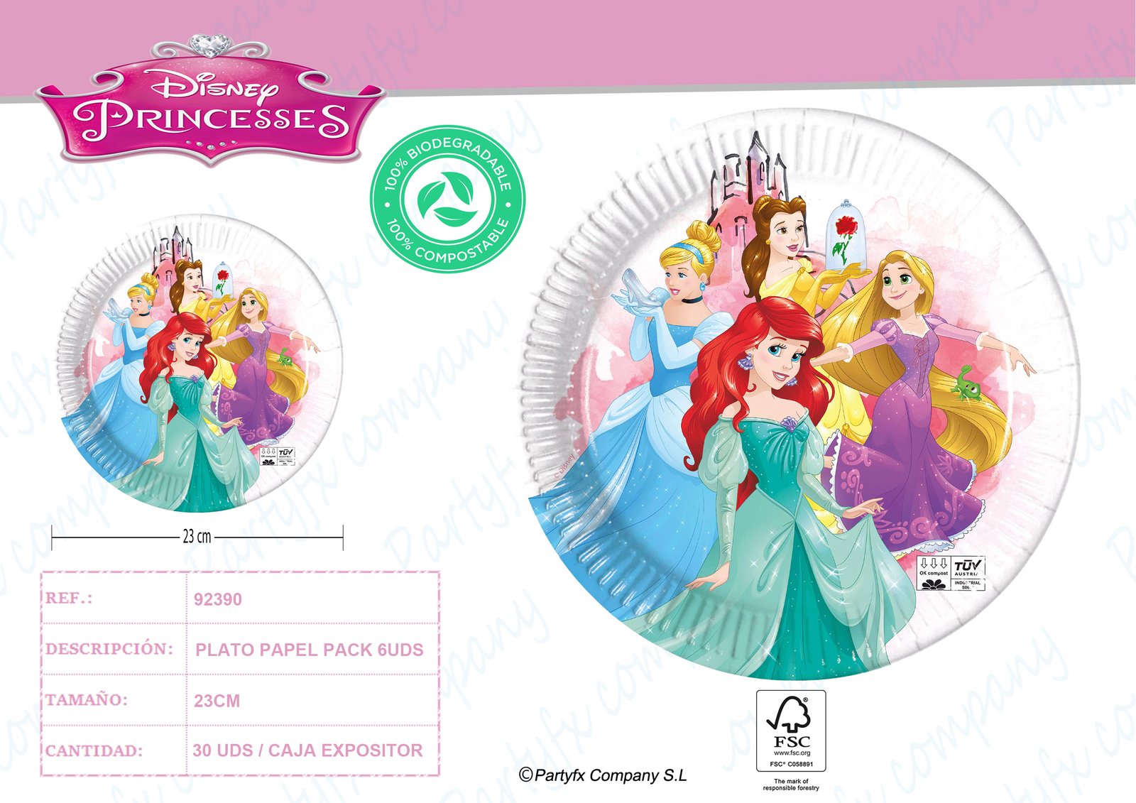?PLATOS DE PAPEL COMPOSTABLE 23CM PRINCESS FABULOUS ? PK-6UDS