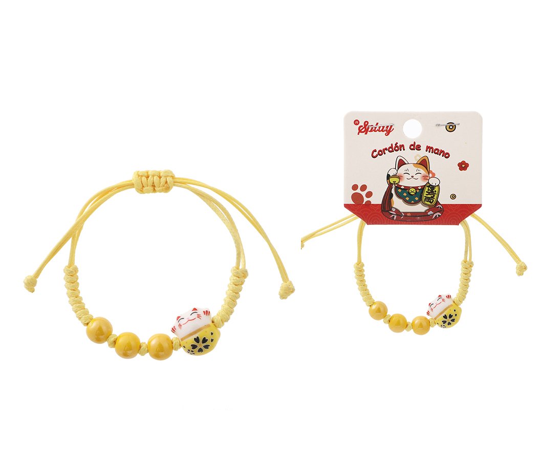 Pulseras coloridas inspiradas en el gato de la suerte, diseñadas para atraer fortuna y buena energía. Ligeras, ajustables y disponibles en varios colores, son perfectas para regalos, ventas al por menor y exhibidores temáticos.