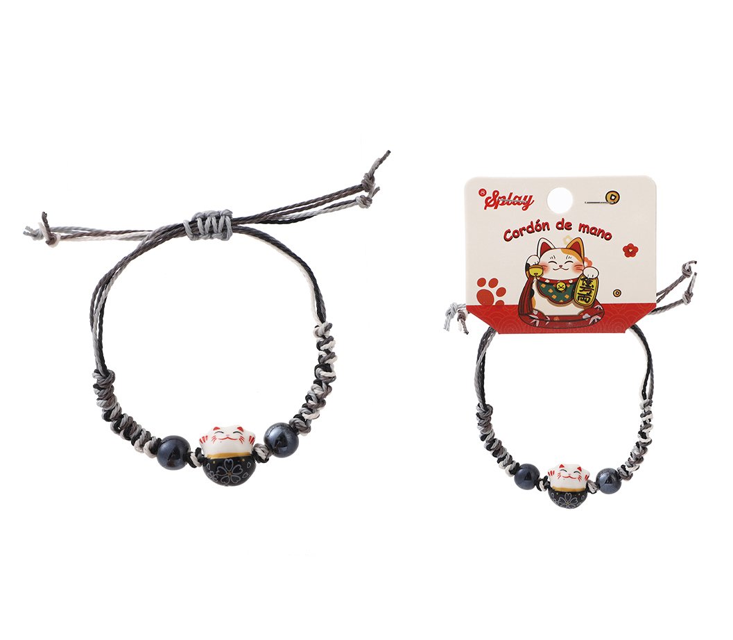 Pulseras coloridas inspiradas en el gato de la suerte, diseñadas para atraer fortuna y buena energía. Ligeras, ajustables y disponibles en varios colores, son perfectas para regalos, ventas al por menor y exhibidores temáticos.