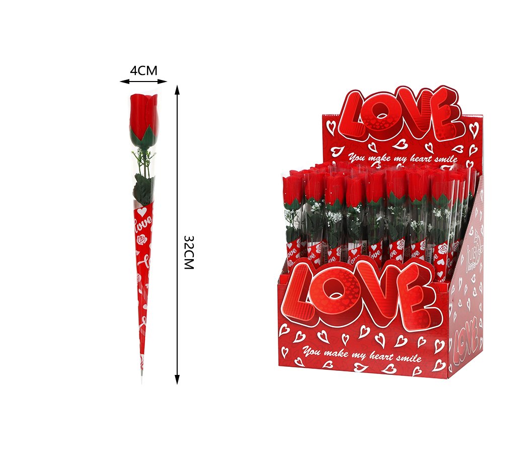 Rosa roja individual en caja expositora