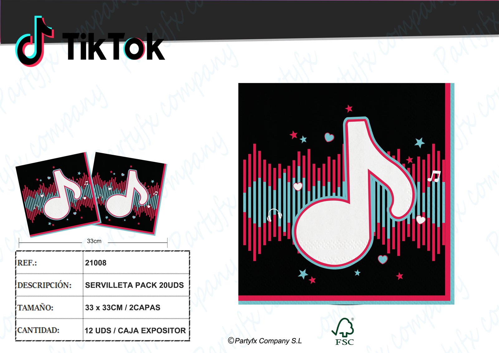 SERVILLETAS 33X33CM DE TIKTOK PACK 20UDS