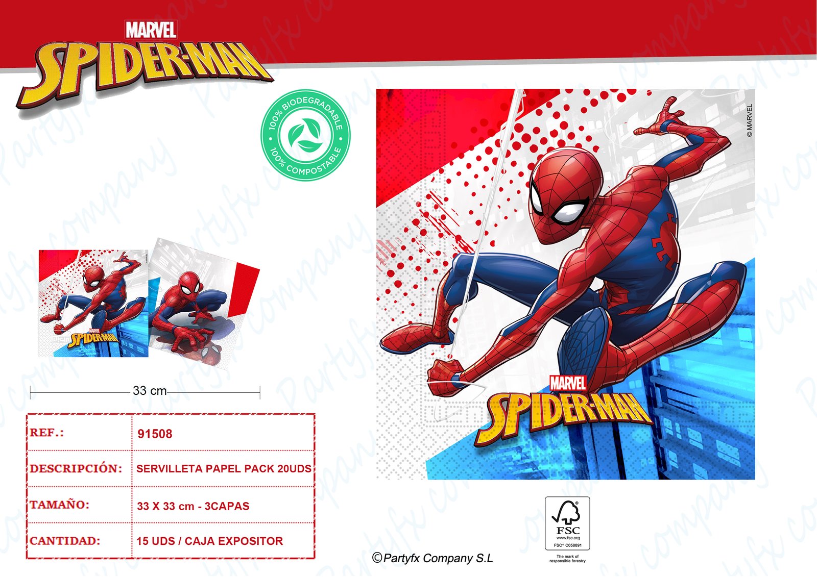 ?SERVILLETAS COMPSTBABLE 3CAPAS SPIDERMAN SUPER HERO ? PK-20UDS