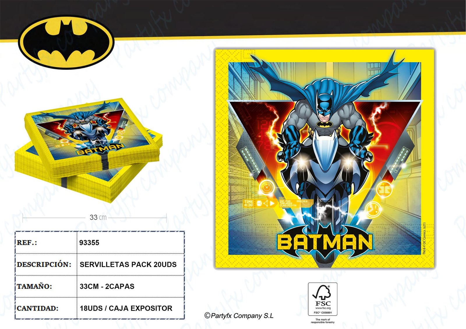 SERVILLETAS DE PAPEL 2CAPAS 33x33cm BATMAN