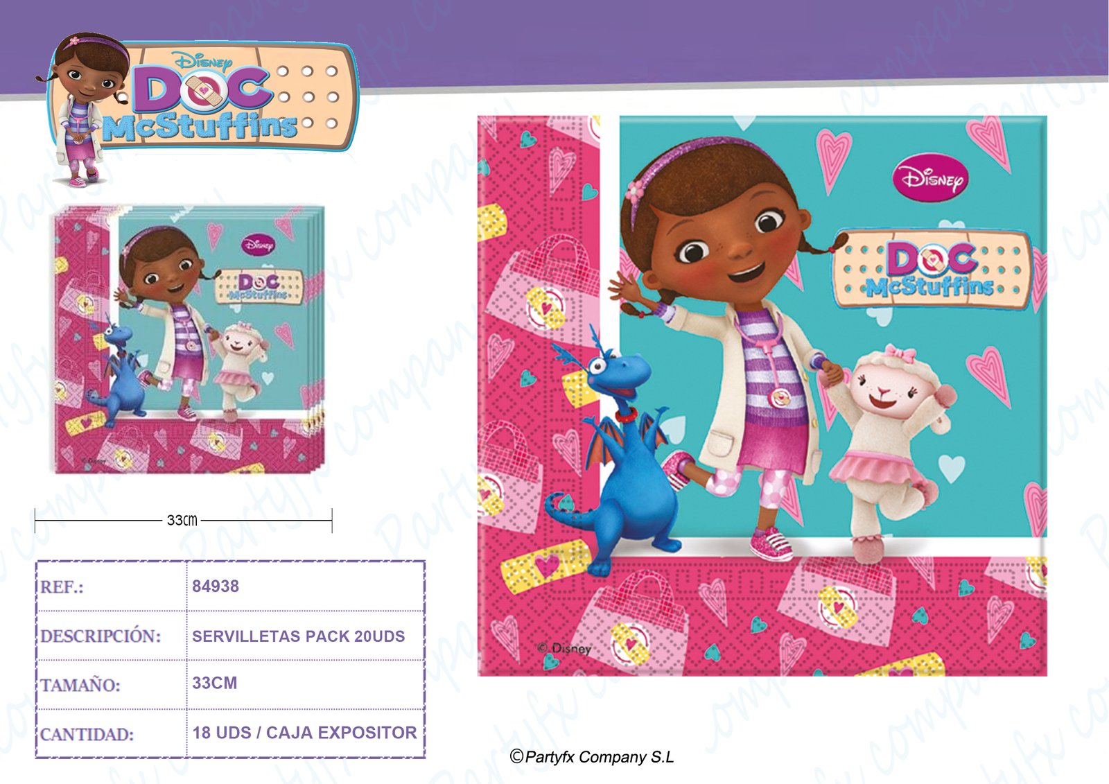 SERVILLETAS DE PAPEL DOC MCSTUFFINS PK-20UDS