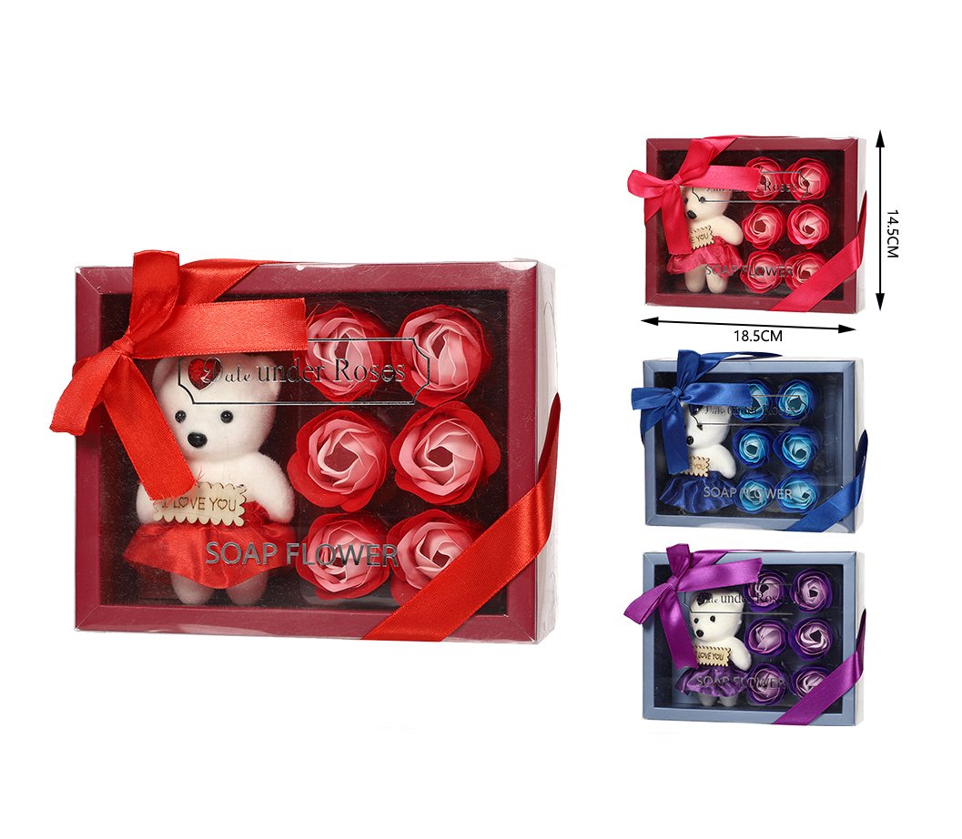 Set de rosas con osito en caja