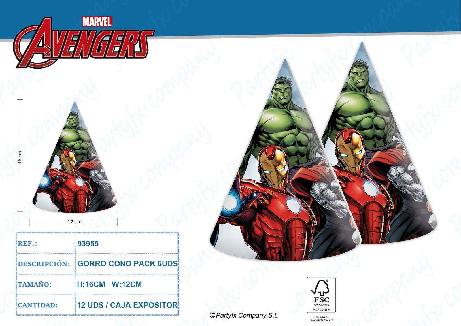 SOMBRERO DE CONO PAPEL DE AVENGERS INFINITY STONES MARVEL 6UDS
