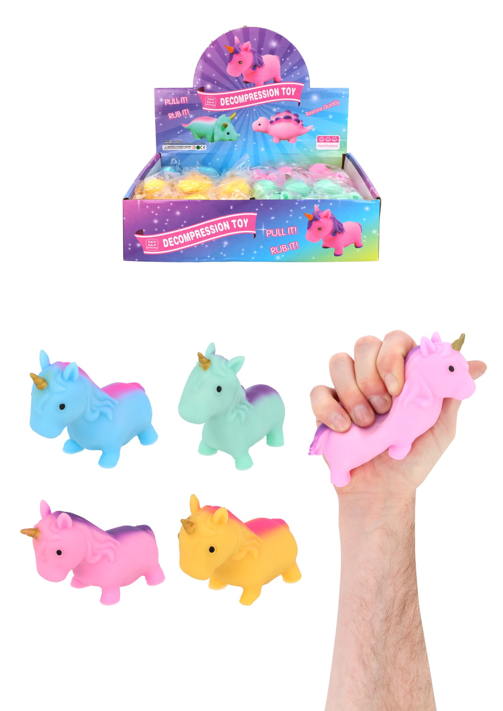 Squeeze antiestrés con efecto azúcar y brillo en diseños divertidos y coloridos. Material suave y elástico que proporciona una experiencia sensorial agradable. Producto ideal para zona de impulso y venta rápida en mostrador.