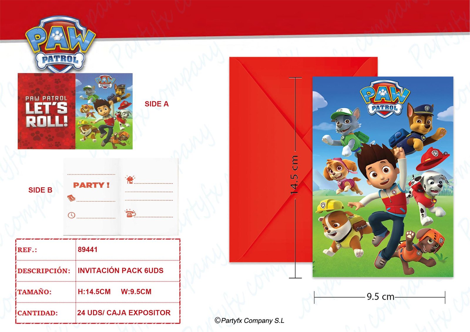TARJETA DE INVITACION PAW PATROL LETS ROLL PK-6UDS