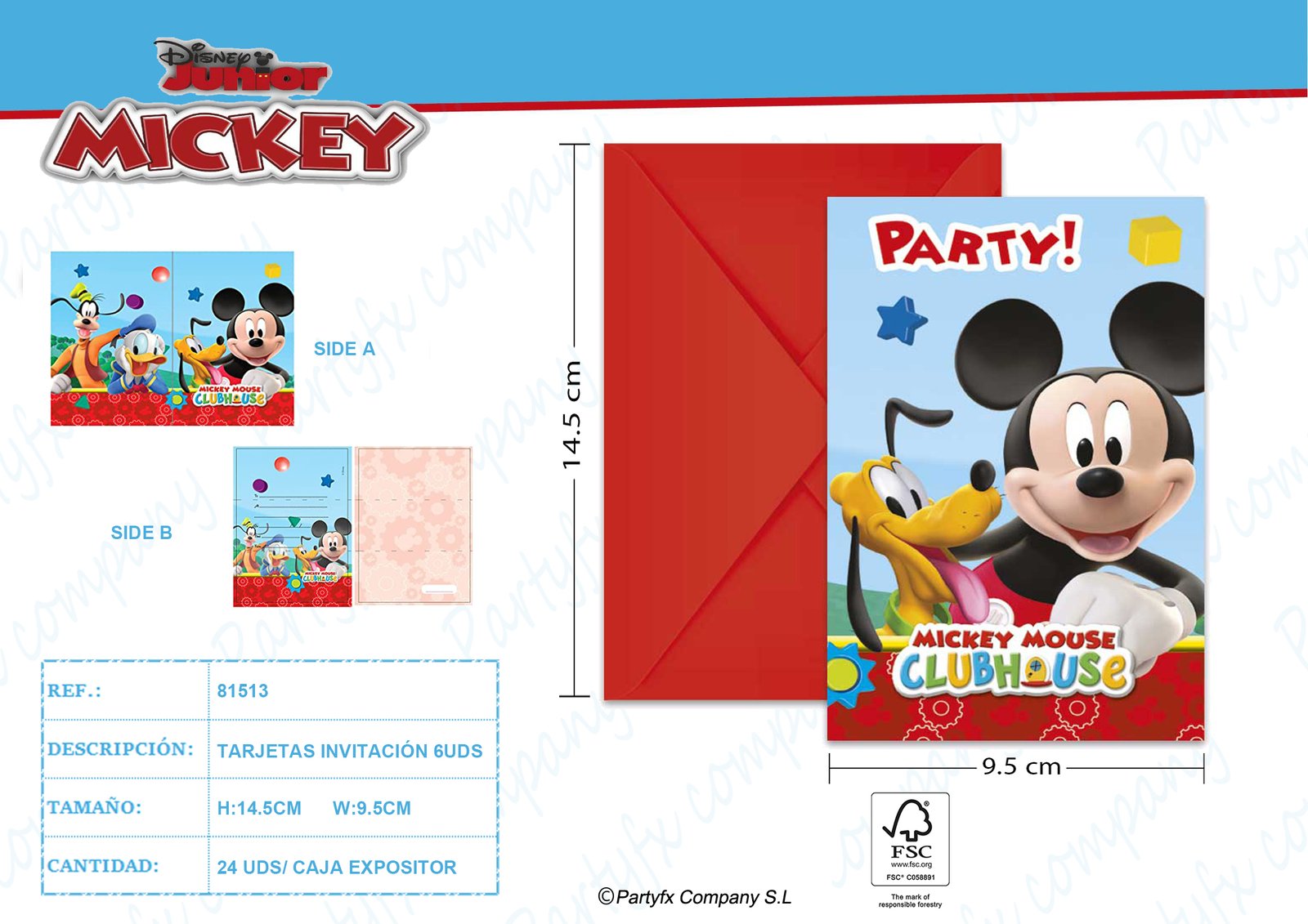 TARJETA DE INVITACION PLAYFUL MICKEY PK -6UDS