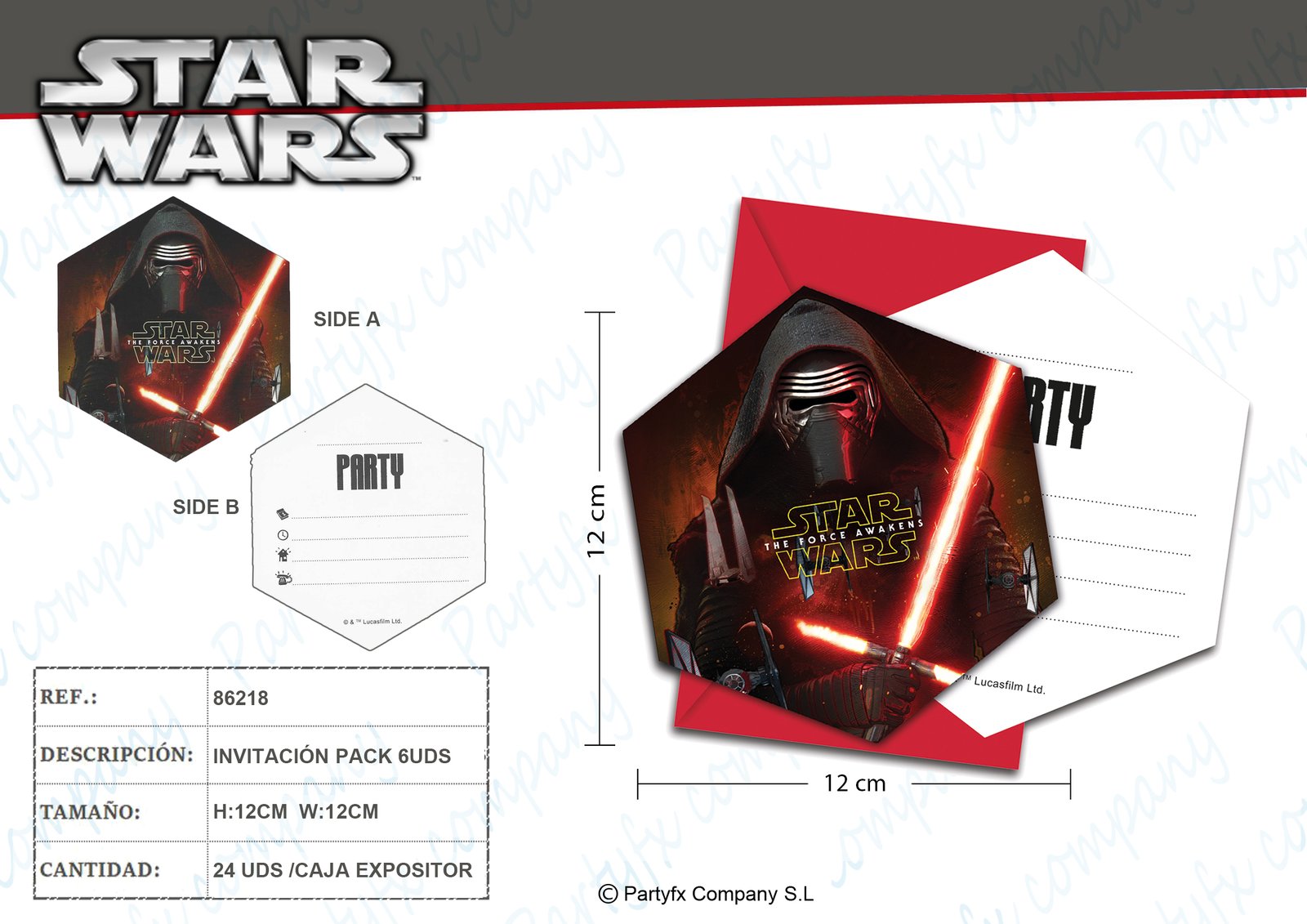 TARJETAS DE INVITACION STAR WARS THE FORCE AWAKENS PK-6UDS