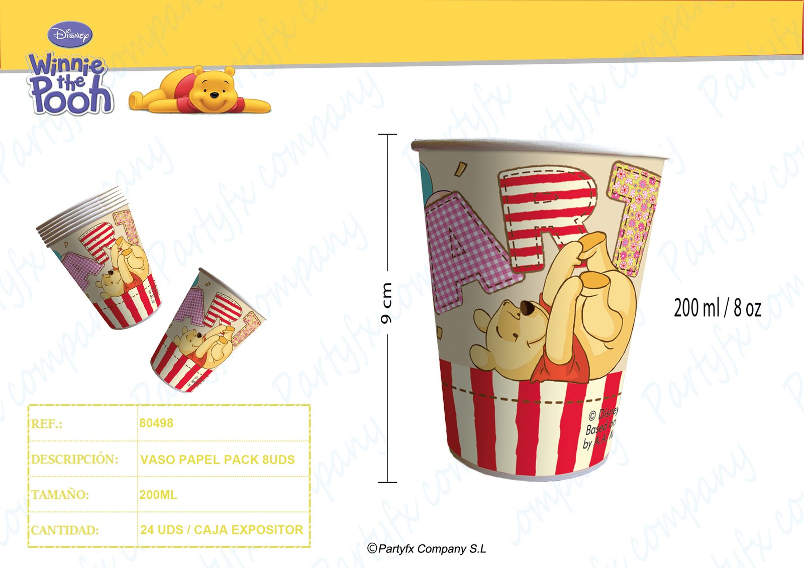 VASO DE PAPEL 200ML WENNIE ALPHABET 6UDS