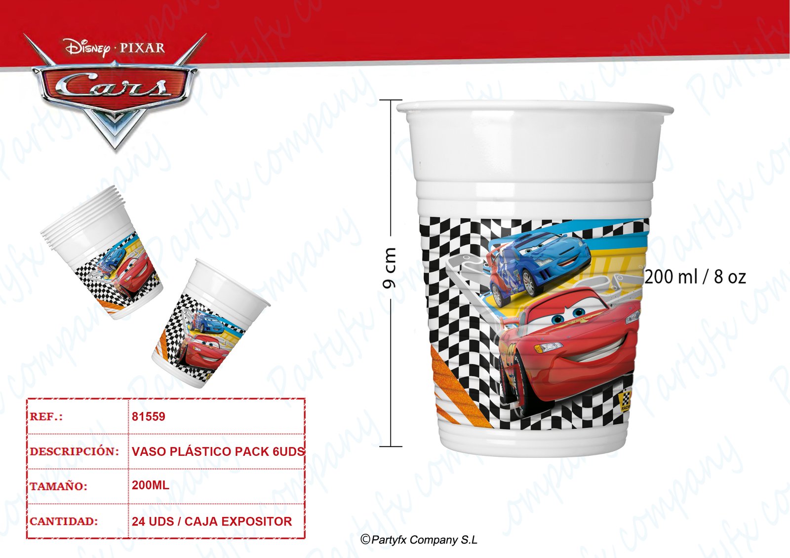 VASO DE PLASTICO 200ML CARS RSN 6UDS