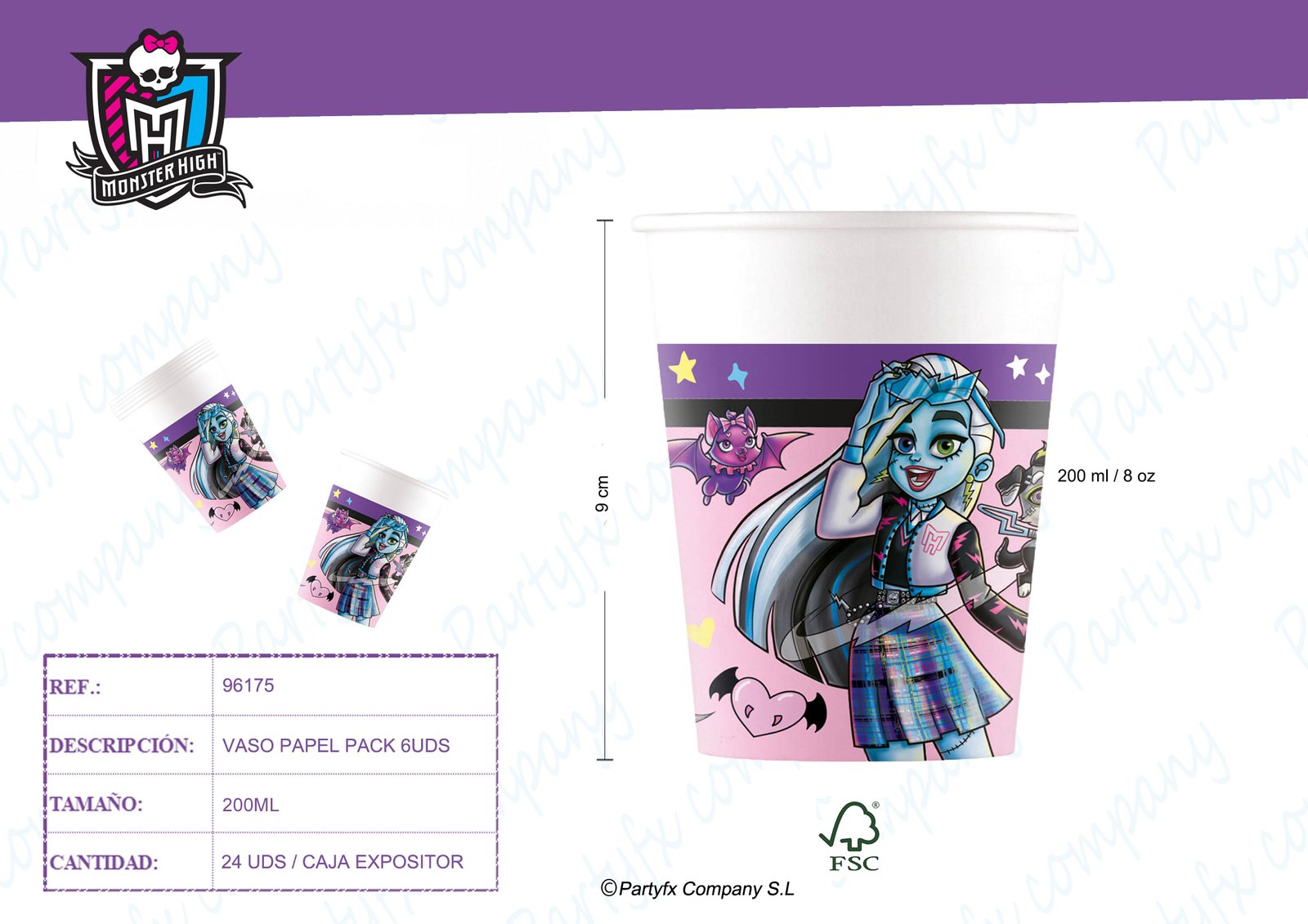 VASO PAPEL 200ML DE MONSTER HIGH