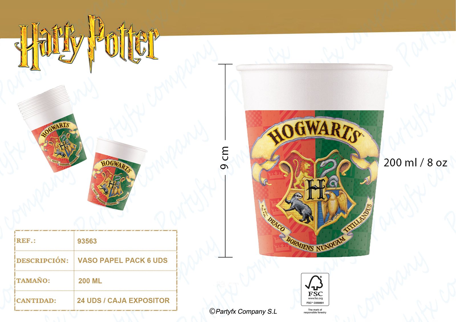 VASO PAPEL 200ML FSC DE HARRY POTTER WARNER 6UDS